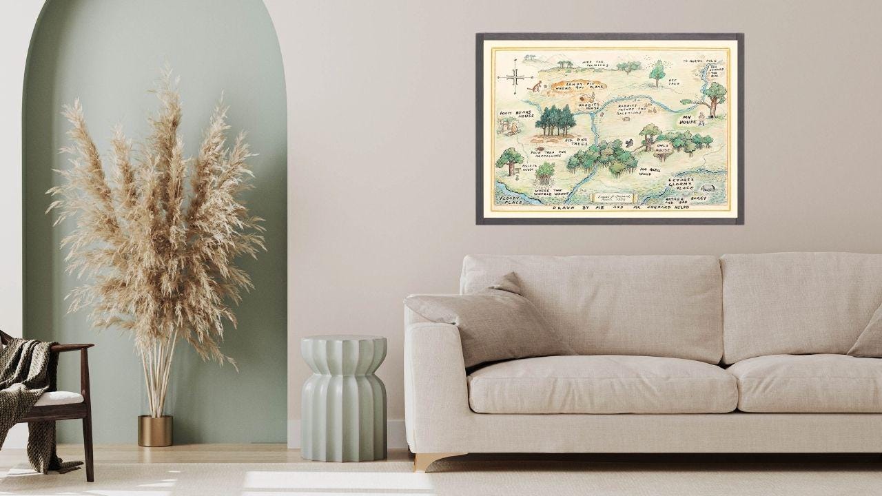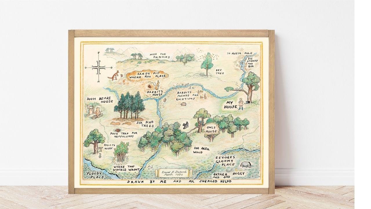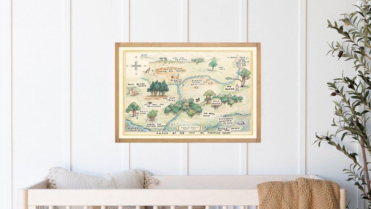 100 Acre Wood Map Wall Art | Winnie the Pooh Nursery Decor | Baby Shower Gift Print