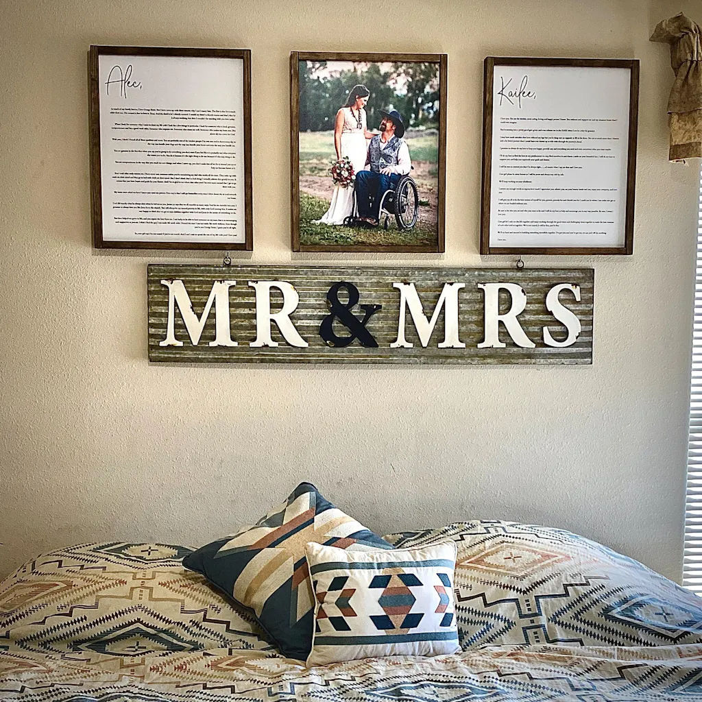 Duo Wedding Vows with a wedding photo Signs are the perfect decor for your bedroom to remind you each of the reason why you said "I do".