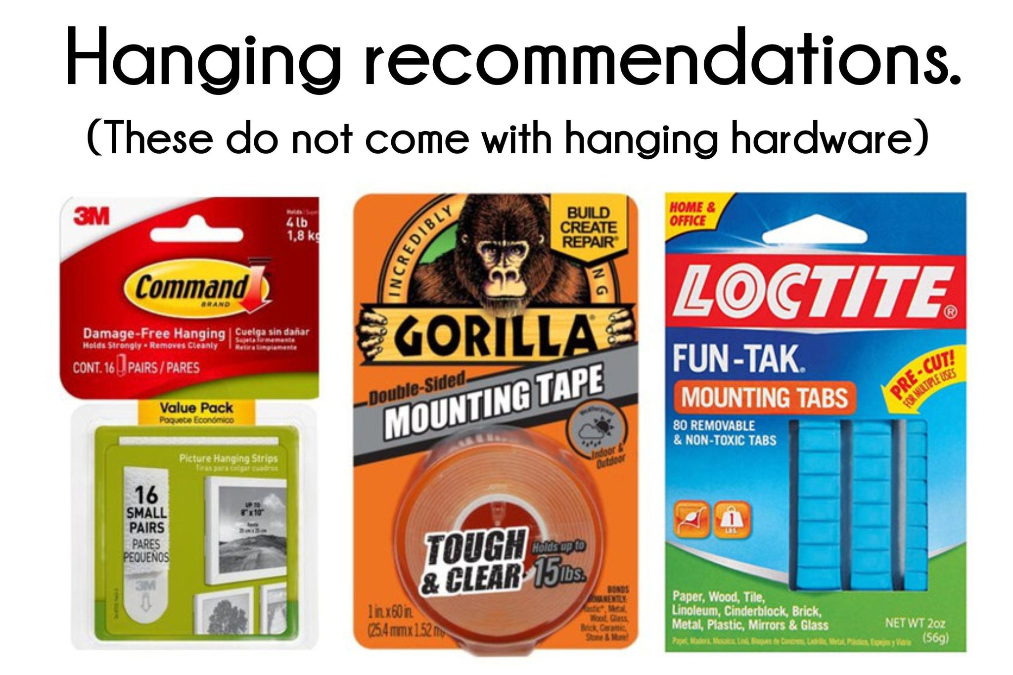 ** No hanging hardware is included. You can hang them from the letter with Small nails, Poster putty, Gorilla tape, 3M, or Command strips.