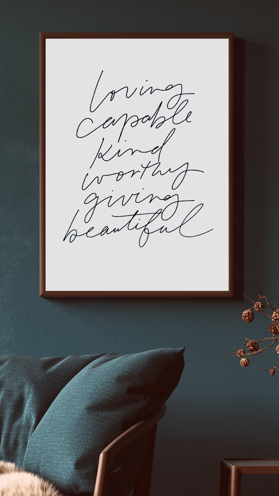 Hand Lettered Design | Lovable Capable Kind Worthy Giving beautiful wood sign | Scripture Wall Art | Framed Wood Signs | Affirmation Sign
