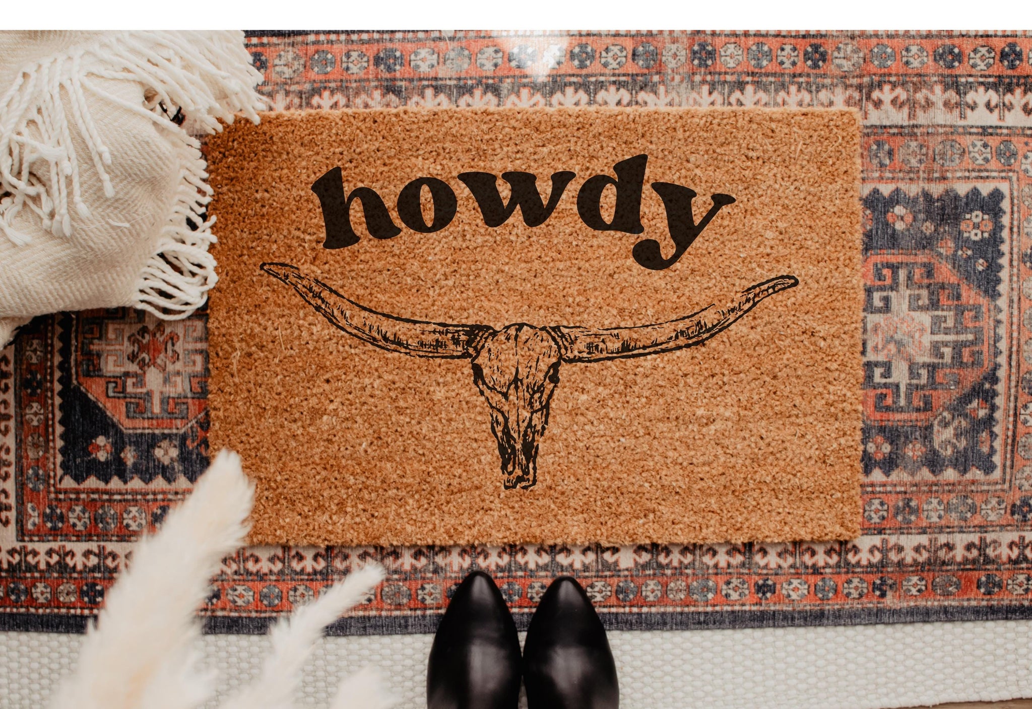 Western Style Doormat, Howdy doormat, Modern Western welcome mat, Modern Cowboy, Disco Cowboy, Funny Doormat, Cowboy Chic, Cowboy art,
