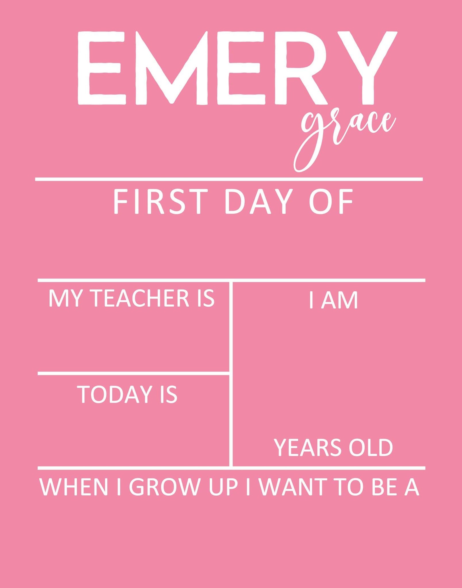 Use a dry erase marker to write in your child’s teacher, grade, date, age, and dream job. Wipe clean and reuse every year!