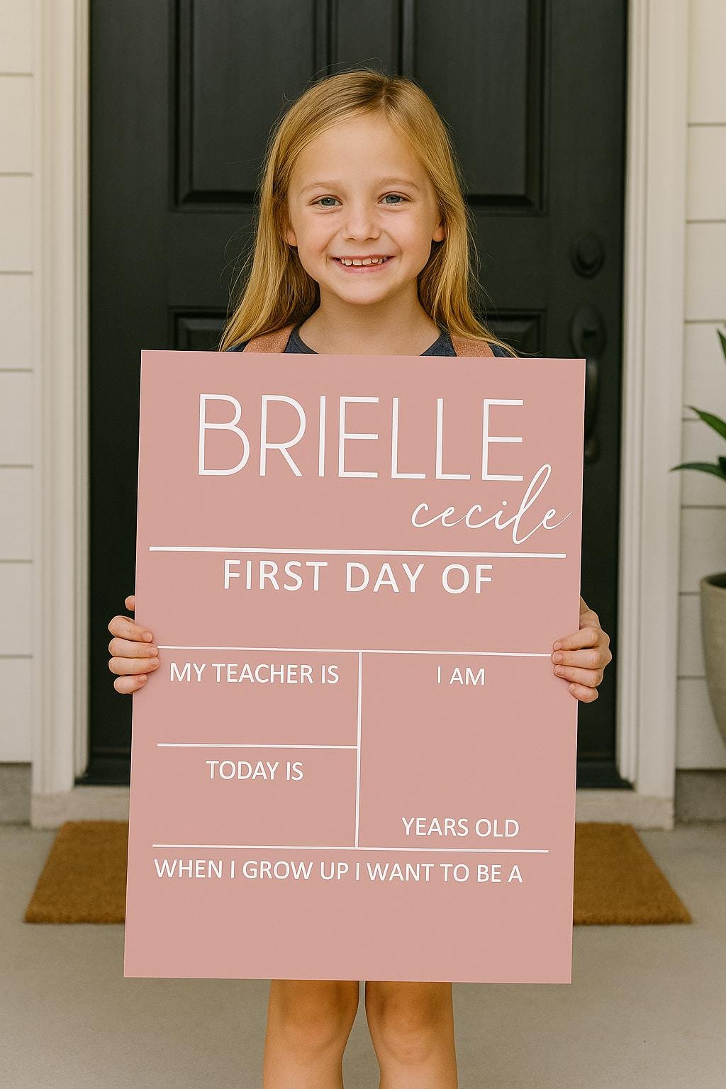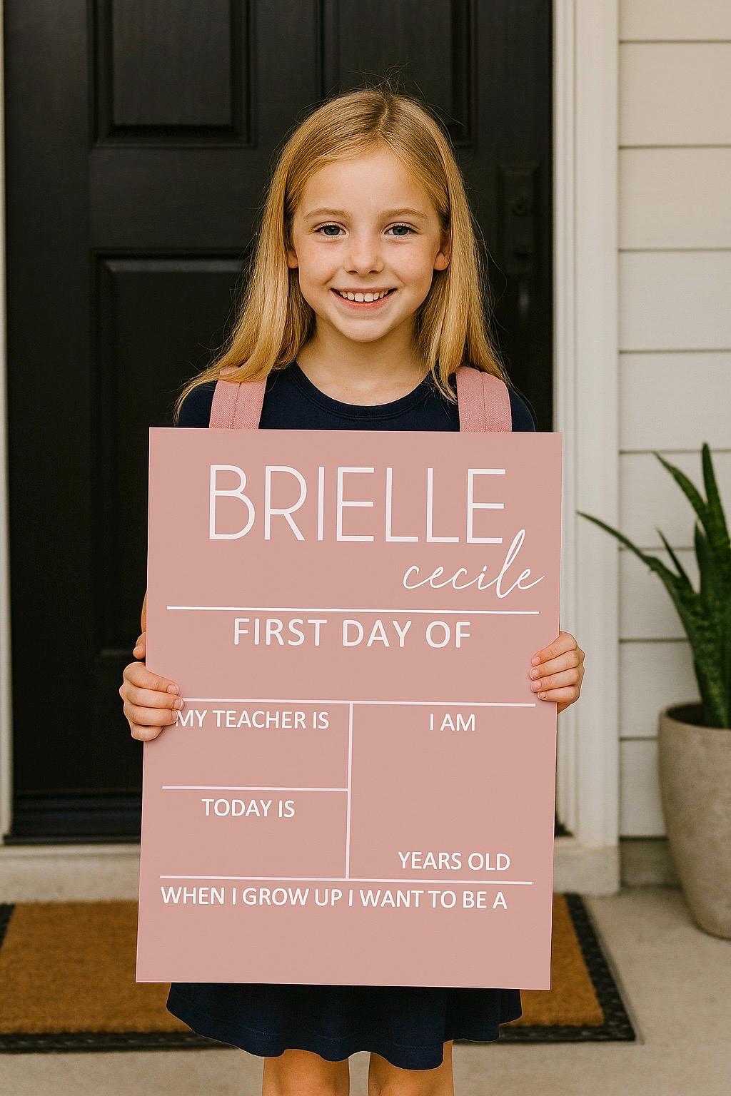 Custom First Day of School Sign | Personalized Back to School Board | Reusable Milestone Photo Prop for Kids | Name Included